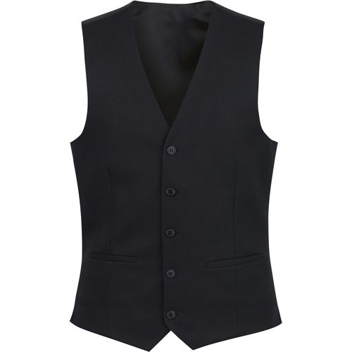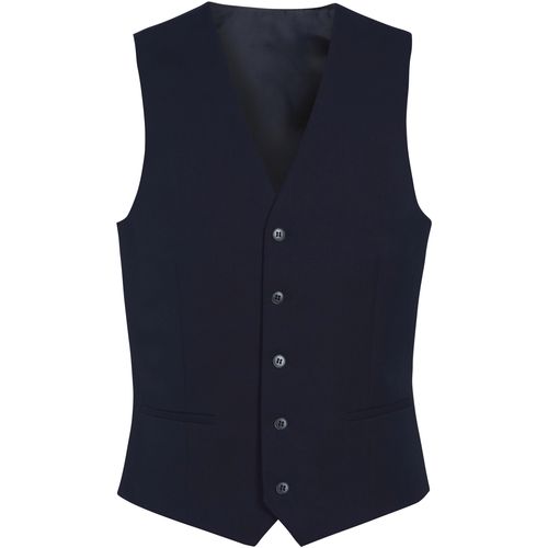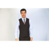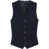 Costas em cetim ajustáveis. Tratamento fácil. Muito resistente – teste Martindale > 100 000 fricções. Colete com 5 botões e 2 bolsos, com costas em cetim regulável.