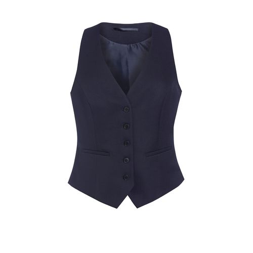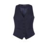 Costas em cetim regulável. Muito resistente – teste Martindale > 100 000 fricções. Tratamento fácil. 100% poliéster superfino. Colete com 5 botões e 2 bolsos, com costas em cetim regulável.