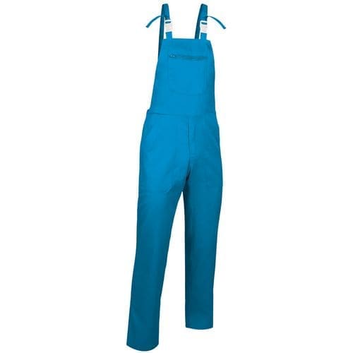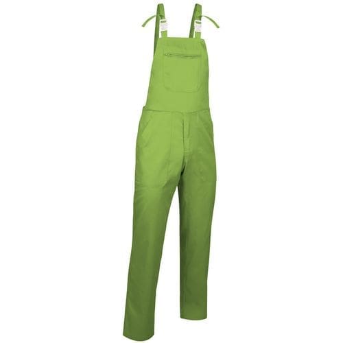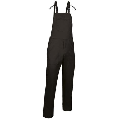 calça com peitoral e alças. confeccionado em tecido de sarja de algodão/poliéster resistente e durável. frontal com cinta ajustável com fechos de correr para melhor ajuste. calças calça inferior com fecho por baixo da aba, fecho com botões no lado esquerdo e cinta elástica na metade traseira para fácil colocação e melhor ajuste. dois grandes bolsos dianteiros nas ancas, um bolso traseiro direito e um bolso central grande com fecho de correr em parte superior para fácil acesso a tudo e destacar a marcação. métodos adequados de marcação: bordado, estampagem, vinil, transfer, etc. ideal tanto para festas populares como para trabalho.Composition : 65% poliéster 35% algodão.