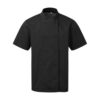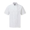 Tecido Coolchecker® anti transpiração. Dois bolsos para canetas na manga esquerda. Botões em resina resistentes. 65% poliéster, 35% algodão. Aperta com dez botões em tecido. Um bolso duplo para canetas na manga esquerda. Gola à padre. Painel central das costas é fabricado a partir de tecido Coolchecker® que permite a gestão da humidade e a saída da transpiração. Lavagem doméstica a 60 °C.