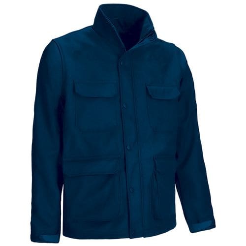 casaco multibolsos softshell com forro de malha interna. confeccionado em tecido de softshell espesso com três camadas (exterior plana repelente à água, camada intermédia respirável e interior micro polar) repelente à água, com efeito corta-ventos e alta ventilação térmica. gola alta de dupla camada com fecho de correr central escondido sob a colocação de botões de pressão para maior calor e conforto. punhos ajustáveis com velcro e cintura com cordão e regulador ajustáveis para melhor ajuste e conforto. bolso interior, dois bolsos frontais com colchetes e aberturas laterais que levam a mais dois bolsos, dois bolsos superiores, com fecho de aba e velcro, para ter tudo acessível inclui fecho de correr nas costas para facilitar a marcação. métodos adequados de marcação: bordados, costura e termoadesivos anti-migração. ideal para o trabalho e uso empresarial.Composition : 85% poliéster 10% poliuretano 5% elastano.
