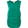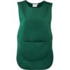 Tecido de sarja: leve e robusto. Bolso grande ventral funcional. Acabamento anti vincos. 65% poliéster/35% sarja de algodão. Bolso frontal grande. Fitas laterais reguláveis por molas de pressão. Acabamento anti vincos. Lavagem industrial a 85 °C e doméstica a 60 °C. Comprimento: 68 cm.