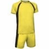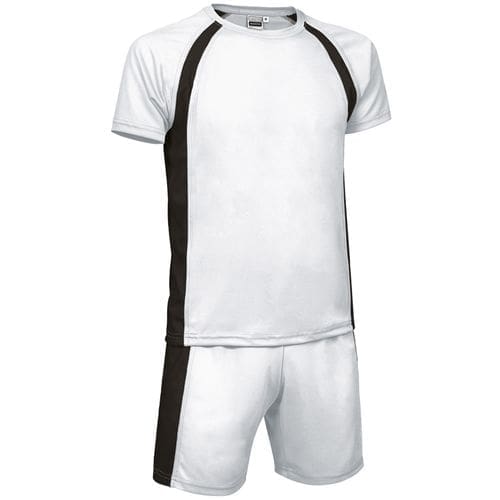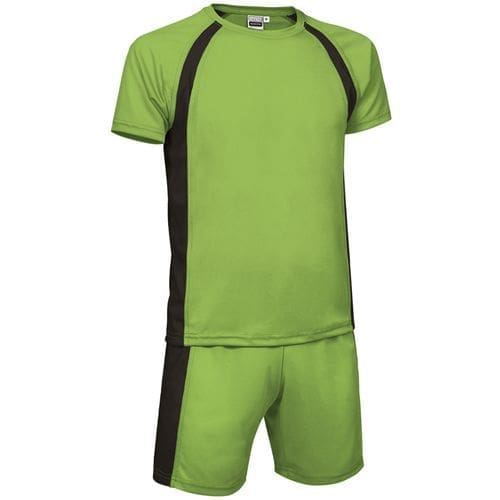 fatos desportivos composto por T-shirt de manga curta com gola redonda e calções. confeccionada em tecido técnico respirável bird-eye que facilita a secagem rápida e a eliminação do suor. design em cores brilhantes e combinado em contraste que lhe confere originalidade. cintura com elástico e cordão para melhor ajuste e maior conforto. costura dupla na gola, mangas, bainha da T-shirt e bainha dos calções que aumenta a sua resistência. métodos adequados de marcação: sublimação, estampagem, bordado, trenfer, patchs, etc. ideal para equipas desportivas, vendido apenas como um conjunto, não separadamente.Composition : 100% poliéster.