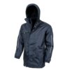 Blusão impermeável, corta-vento e respirável. Acabamentos reflectores nas mangas. 100% poliéster. BLUSÃO EXTERNO: capuz impermeável com cordão de ajuste. Costuras duplas e termocoladas. Pala de protecção com velcro na frente. Acabamentos reflectores nas mangas. Bolso no peito com fecho. Fecho bidireccional na frente. Punhos elásticos. Bolsos interiores e laterais. Sistema interior para prender o blusão com um fecho extra. BLUSÃO SOFTSHELL INTERNO: Conectores nos punhos e na gola. Punhos elásticos. Bolsos com fecho na frente. Fecho frontal.