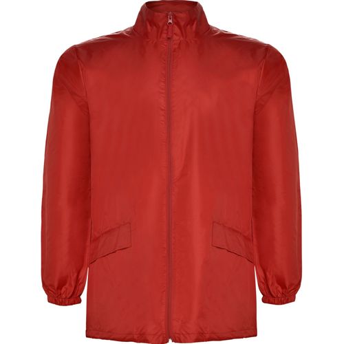 Casaco de chuva impermeável. Gola alta e capuz dobrável com cordão ajustável. Fecho de correr à frente com puxador a condizer. Dois bolsos laterais com aba. Punhos elásticos. Fita elástica no interior do bolso para dobrar e guardar. Modelo impermeável. O modelo tem 185 cm e está a usar o tamanho L.100% Poliéster, 70 g/m2 Green Points Total :16 – CO2 foot print : 5,3Serigrafia – parte esquerda do peito – max color : 1 – 120 x 120 mm.