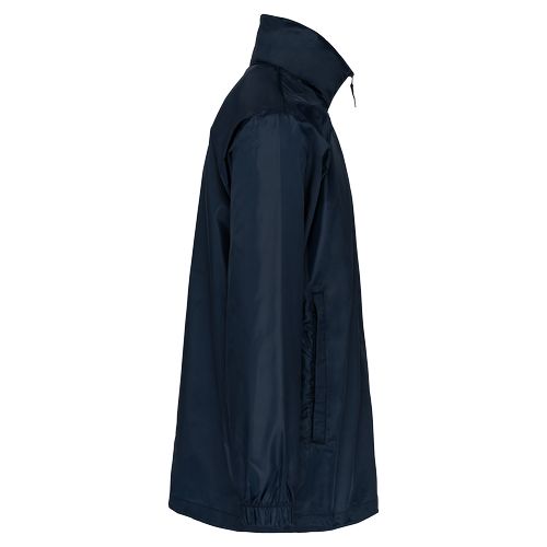 Material flexível e muito leve. Prático e dobrável graças ao sistema K-WAY®. Proteção contra o vento e a chuva. 100% poliéster. Capuz no interior da gola. Fecho frontal. 2 bolsos frontais com fecho. Cordão de ajuste. Punhos elásticos. Transforma-se em bolsa (encaixa no bolso) – sistema K-Way®.