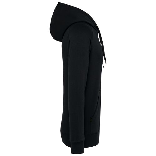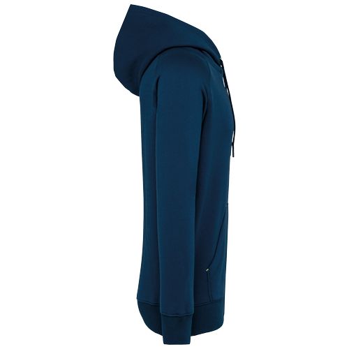 Interior cardado para maior conforto. Muito fácil de personalizar graças à etiqueta amovível tear-away e um encaixe em meia-lua na zona do decote nas costas. Confeccionado com fio vortex muito resistente. 65% poliéster/35% algodão. Fio Vortex. Interior cardado. Algodão penteado. Corte justo. Mangas raglan. Fecho em nylon. Capuz forrado em malha de rede tom sobre tom. Bolsos tipo canguru com 1 bolso fluorescente para telefone. Tapa-costuras no interior do capuz, ilhós do cordão do capuz e pontos nos bolsos em cores fluorescentes. Punhos e cós em malha rib 2 x 2 com espessura dupla. Acabamento em meia-lua nas costas para facilitar a personalização de marca no interior. Etiqueta de marca Tear-away.