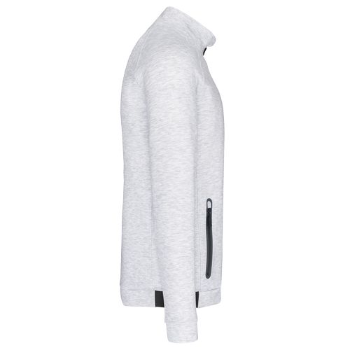 Material muito confortável. Com fecho. 2 bolsos frontais com fecho e acabamento termocolado. 94% poliéster/6% elastano (79% poliéster/15% viscose/6% elastano para cores mescladas). Material ultraconfortável. Com fecho. 2 bolsos frontais termoculados com fecho. Acabamento da manga e da bainha ajustável com uma parte elástica Black em todas as cores e Dark Grey na Ash Heather (fechos também). Ideal para ser usado com as calças de fato de treino PA1008, estilo Urban Apparel.