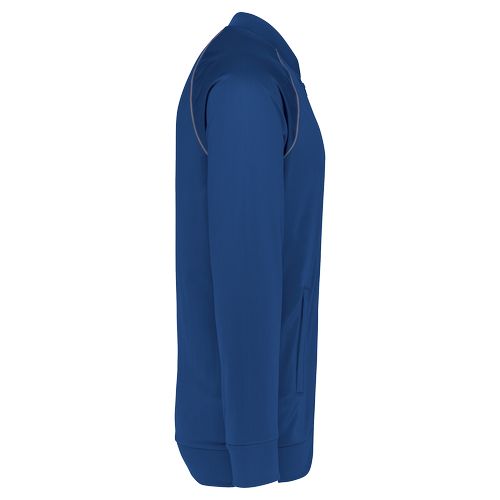 Personalização fácil graças à etiqueta amovível Tear Away. Detalhe em contraste para um design fashion. 100% poliéster tricot. Corte direito. Fecho de nylon tom sobre tom. Mangas raglan com risca em contraste, Malha rib 1 x 1 no colarinho, nas mangas e na bainha. 2 bolsos laterais com fecho. Etiqueta da marca destacável para facilitar a personalização.