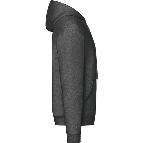 Excelente durabilidade – não deforma. Suave e confortável. Heather Grey 260 g/m². 80% algodão/20% poliéster (Dark Heather Grey 60% algodão /40% poliéster). Capuz forrado com tapa-costuras em jersey e cordões planos à cor. 2 bolsos à canguru. Acabamento em malha rib algodão/Lycra® no cós e nos punhos. Fecho com recobrimento para ajudar na personalização.