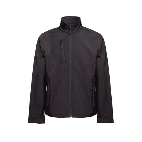 Casaco softshell (unissexo) em 96% poliéster e 4% elastano (280 g/m²) com duas camadas e revestimento resistente à água. Casaco forrado a malha polar, com 2 bolsos frontais e bolso diagonal no peito, ambos com fecho com puxadores de borracha. Punhos ajustáveis com tira aderente. Cordão de aperto elástico na parte inferior. Tamanhos: XS, S, M, L, XL, XXL Properties : Unissexo Materials : Poliéster Certificates : REACH, OEKO-TEX Packing : Polybag – Repacking : Sem polybag individual Default customisation : Colete – Peito (Bordado 3D – 90 x 65).