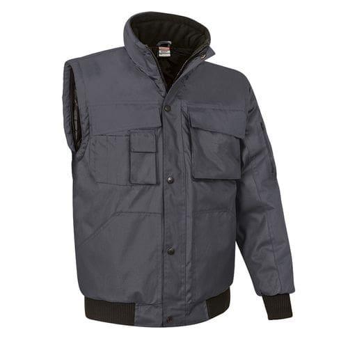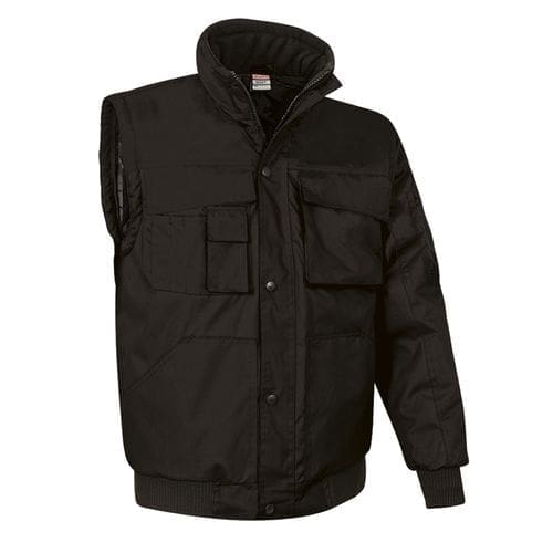 casaco acolchoado de multibolsos com mangas amovíveis que podem ser convertidas num colete. confeccionado com tecido de lona impermeável no exterior, acolchoado e forro interior liso que proporciona retenção térmica e conforto. casaco facilmente convertível num colete removendo as mangas que são fixadas por fechos. punhos e cintura em elástico grosso em canalé que se encaixa confortavelmente. dois bolsos frontais de canguru divididos, dois bolsos superiores com aba e fecho de velcro (à esquerda com fecho de correr para facilitar a marcação), um bolso para caneta, um pequeno bolso para acessórios, para manter tudo acessível. inclui fecho de correr interior traseiro para facilitar diferentes tipos de marcação: estampagem, bordado, transfer, crachás, vinil, etc. ideal para o trabalho, desporto e uso casual.Composition : exterior: 90% poliéster 10% poliuretano – dentro: 100% poliéster.