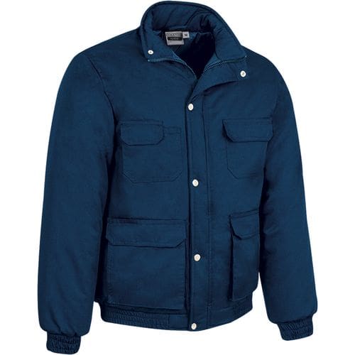 casaco de multibolsos acolchoado. confeccionado em tecido de sarja durável e resistente no exterior, acolchoado e forro liso no interior para uma retenção térmica extra. gola de dupla camada e fecho de correr central a todo o comprimento escondido por baixo da aba com fechos de metal para um aquecimento extra e conforto. punhos e cintura com elástico interno na cintura com alças para um ajuste confortável. quatro bolsos frontais com fecho de aba e velcro e um bolso interior de velcro para um acesso fácil, também inclui bolso de caneta. inclui o fecho de correr interior traseiro para facilitar diferentes tipos de marcação: estampagem, bordado, transfer, crachás, vinil, etc. ideal para o uso de trabalho e uniformes.Composition : exterior: 65% poliéster 35% algodão – dentro: 100% poliéster.