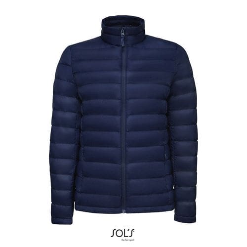 SOL’S WILSON SENHORA. Casaco leve acolchoado para senhora. Tecido exterior e forro: 100% poliamida. Enchimento 60% Sorona 40% poliéster reciclado. POLIAMIDA 380T, abertura com fecho de correr, 2 bolsos frontais com fecho, 2 bolsos interiores, gola alta pequena, corte entalhado, sistema de dobragem ”em saco” com stoppers. OEKO-TEX®. Só vendido com impressão.