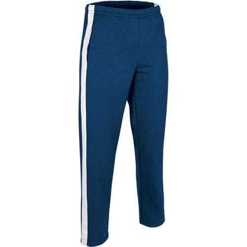 calças desportivas compridas, tipo fato de treino para desporto, em cores combinadas. confeccionado em tecido de poliéster cardado com toque de algodão, e acolchoadas no interior que proporciona alta retenção térmica e conforto. duas faixas largas em cores contrastantes cosidas de cada lado. cintura com elástico e cordão para melhor ajuste e maior conforto. dois bolsos nas ancas para ter tudo acessível. métodos adequados de marcação: estampagem, bordado, transfer, patchs, etc. ideal como peça de vestuário desportivo na época de Inverno ou em ambientes frios.Composition : 100% poliéster.