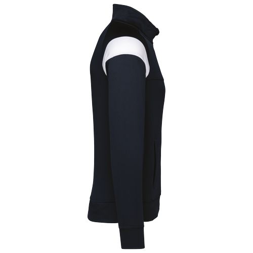 Poliéster interlock mate de tratamento fácil. Mangas raglan com detalhe em contraste nos ombros. Gola subida. 100% poliéster interlock mate. Corte direito. Gola com fecho frontal invertido em nylon tom sobre tom. Mangas raglan com detalhes em contraste nos ombros. Detalhes em tecido texturado nas laterais e nas costas. Debruado na bainha. Costas mais compridas e aberturas laterais para maior liberdade de movimentos. Fecho recoberto na parte de cima da gola para maior conforto. Etiqueta de marca amovível para facilitar a personalização.