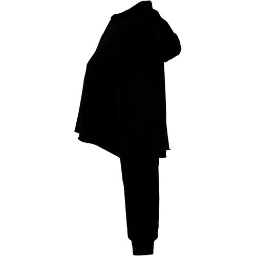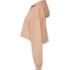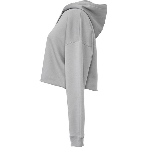 Tecido resistente suave e agradável de usar. Superfície lisa e macia, ideal para impressão. Etiqueta amovível, facilita o rebranding. 52% algodão penteado ringspun/48% poliéster. Sweatshirt com capuz e cordões. Corte curto fashion e sem acabamento na bainha, com costura inacabada. Costuras laterais. Punhos com acabamento em malha rib.