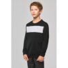 100% poliéster : muito resistente. Tapa-costuras interior no decote. 100% poliéster. Poliéster tricot. Frente com banda em contraste com cerca de 11,50 cm de altura. Decote redondo. Tapa-costuras. Acabamento em malha com elastano no decote na manga e na bainha.
