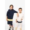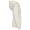 85% algodão biológico/15% poliéster reciclado pós-consumo. Algodão penteado. Com banho de enzimas. Corte oversize com ombros descaídos. Cardado com 3 fios LSF (Low Shrinkage Fleece: com pré-encolhimento). Meia-lua nas costas. Capuz forrado no material principal. Bolsos laterais minimalistas. Malha rib 2×1 nos punhos e no cós. Tapa-costuras em chevron tom sobre tom no acabamento do interior da gola. Certificações : GOTS / Algodão Biológico EVE Vegan Polyester recyclé